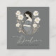 The classy and stylish Doula business card features a grey background with an illustration of a pregnant woman surrounded by white flowers, elegant script writing that reads "doula," and a name on the front. Add your QR code, contact information, and social media handle to the back to further personalize it. Ideal for lactation consultants, postpartum doulas, midwives, and doulas/birth coaches.