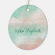 Personalized birth stats and elegant script name with cute baby photo ornament in sweet blend of blush pink cloud and pastel turquoise green sky ideal for creating warm and cozy atmosphere for a newborn's first Christmas. This whimsical keepsake is modern and elegant way to say 'Welcome baby girl" this holiday.