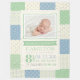 Celebrate your little one’s arrival with this personalized photo birth stats fleece baby blanket. Made from soft, cozy fleece, it features a quilt like style in sea foam green and blue. Add your baby’s name, birth date, weight, length, and time of birth for a keepsake that’s as meaningful as it is comfortable. Customize with your favorite newborn photo to create a one-of-a-kind design that’s perfect for the nursery. The lightweight yet warm fabric makes it ideal for snuggling, tummy time, or displaying as a treasured memory. This custom baby blanket also makes a thoughtful gift for new parents, baby showers, or christenings.