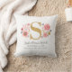 Birth Stats Pink Floral Monogram Initial Letter S Throw Pillow