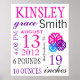 Send me an email with the contact the seller button, with the information and colors you want and I'll make it for you to purchase. Please do not purchase until I've sent you the link with your babies information. It will be a direct view not public.