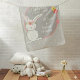 Cute birth stats blanket with a little bunny and a flower pattern in the background. Beautiful personalized gift for new baby girls.