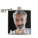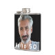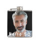 Personalize and add Your own photo. White text: Hello 50! A flask for a 50th (or any age) birthday party for him from his friends. Add your own text and names on the back.