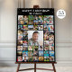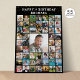 Celebrate any age birthday with a photo collage display on foam board utilizing this easy-to-upload template with 55 square pictures of him or her through the years and entertain party guests. The design features gold confetti, your custom text (the sample suggests HAPPY # BIRTHDAY NAME in an editable font style against an editable black background color so you can customize it to coordinate with your party theme colors and style. ASSISTANCE: For help with design modification or personalization, color change, resizing or transferring the design to another product, contact the designer BEFORE ORDERING via the Zazzle Chat MESSAGE tab below or email makeitaboutyoustore@gmail.com.