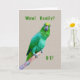 A bright green macaw parrot perching on a limb has in inquisitive look on his face. It makes a humorous 61st birthday greeting card. You can change the inside verse to suit your needs.