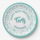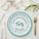 Birthday Age 40 Random Number Pattern Teal/White Paper Plates