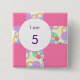 An age number badge is a surefire hit with children on their birthday. This one is a cute candyfloss pink, with a pattern of colourful circles and rings, in the style of a ribbon wrapped around a gift. The colourful badge can be personalised with the child's age number.