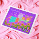 Against a purple background, this charming folk art angel with a birthday cake flies over yellow sunflowers to deliver special birthday wishes. Colorful folk art birdies and butterflies accompany her on her way. Lit candles on the birthday cake produce a lovely glow. Perfect for kids and adults, angel and sunflower lovers, and folk art fans. Cheerful, charming, cute and sweet! Available folded or flat.