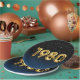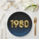 Gold mylar birthday balloons for 1980 birthday on gradient black and blue background with night stars.