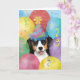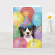 Happy birthday greetings with this design featuring a cute, party hat-wearing Bernese Mountain Dog puppy surrounded by colorful balloons, confetti and streamers.