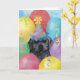 Happy birthday greetings with this cute design featuring a cute, party hat-wearing Black Labrador Retriever puppy surrounded by colorful balloons, confetti and streamers.