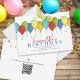 Plain white envelopes are included with paper invitations and will come to fit the invitation size you select. If you don’t need the envelopes, you may choose to not receive them by selecting the dropdown below "Envelopes" and choosing "None." If you’d like to have a design on your envelopes, you can browse all of these available envelopes to find the design that complements your Birthday Balloons Confetti Qr Code Social Media Invitation.