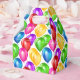 Party favor box is shown in a white background color with a colorful festive birthday balloons print.