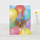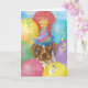 Happy birthday greetings with this cute design featuring a smiling, party hat-wearing German Shorthaired Pointer puppy surrounded by colorful balloons, confetti and streamers.