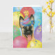 Happy birthday greetings with this cute design featuring a cute, party hat-wearing Belgian Malinois puppy surrounded by colorful balloons, confetti and streamers.
