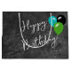 Faded black distressed leather pattern with Happy Birthday text and party balloons.