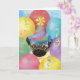 Happy birthday greetings with this cute design featuring a smiling, party hat-wearing Pug puppy surrounded by colorful balloons, confetti and streamers.
