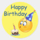 An Adorable Yellow Birthday Emoji Round Sticker For Mailings Or Party Favor Bags