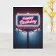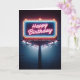 A neon billboard with Happy Birthday text in glowing lights.