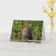 A birthday card with a female Black Bird keeping look out during feeding time for the young.
