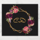 A chic black background with a faux gold geometric frame. Decorated with dark purple and burgundy flowers, roses and boho style feathers. Personalize and add your monogram, initials. Golden colored letters.