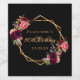 A chic black background with a faux gold geometric frame. Decorated with dark purple and burgundy flowers, roses and boho style feathers. Templates for a name, and a date. Date of birth or the date of the party, golden letters. With the text: 50th (or any age) Birthday written with golden hand lettered style script.