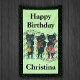 This cloth banner is light green with a black border with dark green polka dots and three black cat musicians playing a guitar, saxophone, and violin with bars of music notes. Customise the Happy Birthday text and your name with the templates.