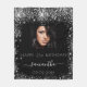 A gift for a girly and glamorous 21st (or any age) birthday. A stylish black background with faux silver glitter dust. Personalize and add your own high quality photo of the birthday girl. The text: The name is written in white with a modern hand lettered style script with swashes.To keep the swashes only delete the sample name, leave the spaces or emoji's in front and after the name. Tempates for a name, age 21 and a date.