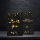 A black background color and golden confetti rain. On front a hand lettered style script and the text: Thank You! and a floral faux gold decor.