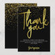 A gorgeous birthday party thank you card. This fabulous card features gold effect typography on a black background with gold confetti. Easy to personalize with your own birthday party thank you details.