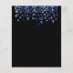 A modern, elegant and invitation. A black background decorated with blue confetti. Personalize and add a name and details. White text.