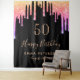 A trendy and glamorous 50th (or any age) birthday tapestry. A classic black background decorated with rainbow colored faux glitter drips, paint dripping look in purple, pink and gold. With the text: 50 Happy Birthday. Personalize and add a name and a date. Date of birth or the date of the party. Golden colored text.