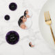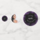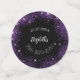A classic black background decorated with dark purple colored faux glitter, sparkles. Personalize and add date, name, age and a photo.