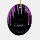 A trendy and glamorous 50th (or any age) birthday ornament. A classic black background decorated with dark purple colored faux glitter drips, paint dripping look. With the text: 50th birthday. Personalize and add a name and a date. Purple colored text. The name is written with a modern hand lettered style script. Perfect as a gift, party favor or as party table setting decoration.