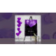 A welcome board for a girly and glamorous 21st (or any age) birthday party. A black background decorated with purple colored faux glitter drips, paint dripping look, balloons. Personalize and add a name and age.