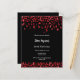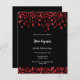 A modern, elegant and invitation. A black background decorated with red confetti. Personalize and add a name and details. White text.