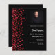 A modern, elegant and invitation. A black background decorated with red confetti. Personalize and add photo, a name and party details. White text.