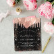 A black background. Decorated with rose gold, blush sparkles and balloons. Personalize and add a name, age 21 and party details. The name is written with a hand lettered style script