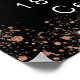 A welcome poster for a girly and glamorous birthday party (any age). A stylish black background decorated with rose gold drips, paint dripping look, balloons. Personalize and add a name.