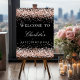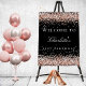 A welcome board for a girly and glamorous 21st (or any age) birthday party. A stylish black background decorated with rose gold confetti. Personalize and add a name and age 21. White letters.
