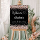 A welcome board for a girly and glamorous 21st (or any age) birthday party. A stylish black background decorated with rose gold confetti. Personalize and add a name and age 21. White letters.