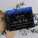 A black background decorated with royal blue confetti. Personalize and add a date and name/age. The text: Save the Date is written with a large trendy hand lettered style script.