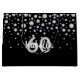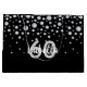 An elegant and glamorous 60th birthday gift bag. Black backdrop and faux diamonds. Templates for a name and age 60. White and gray colored letters. The name is written with a hand-lettered style script.
