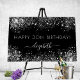 For a girly and glamorous 30th (or any age) birthday party. A chic black background with faux silver glitter dust. Personalize and add a name and age 30. The name is written in gray with a modern hand lettered style script with swashes. Perfect both as a welcome banner or as party decor.
