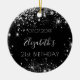 An ornament for a girly and glamorous 21st (or any age) birthday. A chic black background with faux glitter dust. Personalize and add a date, name and age 21. The name is written with a modern hand lettered style script. Perfect as party decoration, favor, keepsake or as a gift.