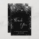 A thank you card for a 50th (or any age) birthday. A black background color, decorated with faux silver glitter. On front large white colored hand lettered script and the text: Thank You, your text, title and a date.