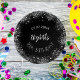 A paper plate for a girly and glamorous 18th (or any age) birthday party. A chic black background with faux silver glitter, sparkles. The text: The name is written with a large modern hand lettered style script. Personalize and add a date, name and age.