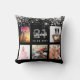 Birthday black silver glitter photo collage name throw pillow