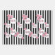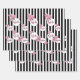 Birthday black white stripes pink florals name wrapping paper sheets