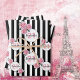 Birthday black white stripes pink florals paris wrapping paper sheets